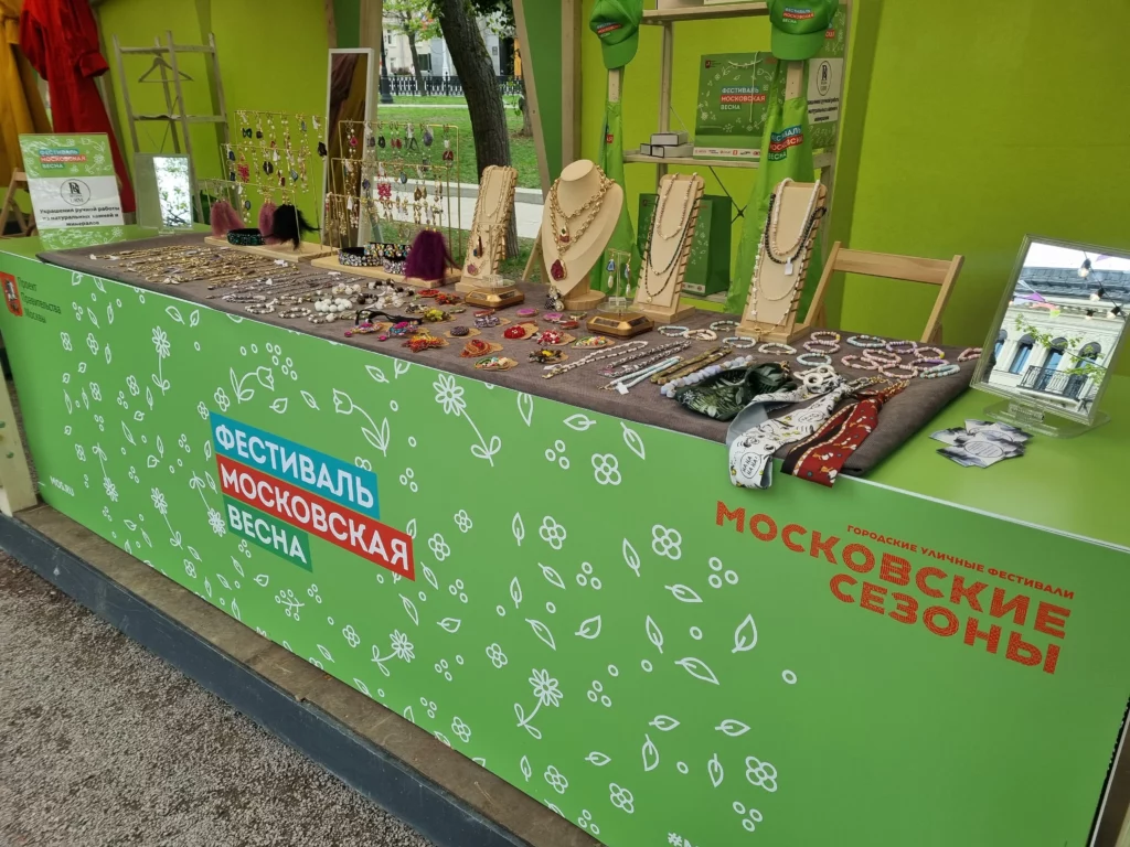 Авторские коллекции украшений ручной работы от известного дизайнера Регины Урм были представлены на выставке Московские сезоны на Тверском бульваре летом 2023г.