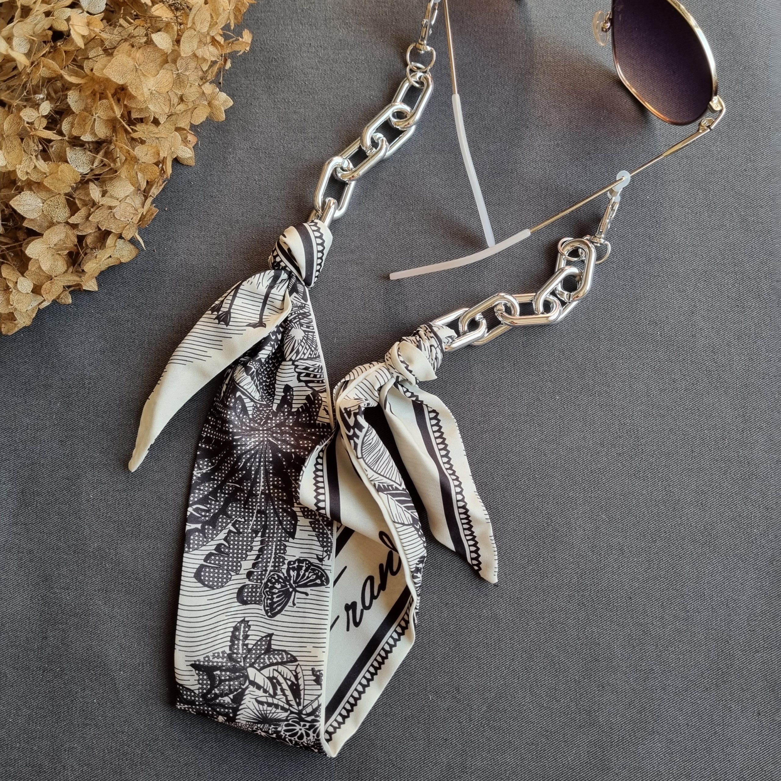 Держатель для очков из шелка с пластиковой серебристой цепью — стильный аксессуар, который не оставит равнодушной!