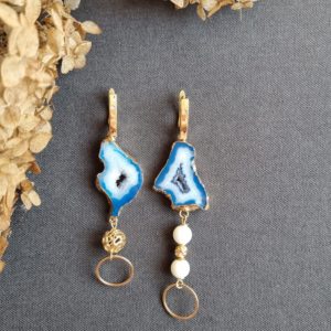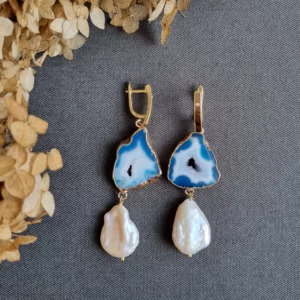 Браслет — цепь с друзой голубого агата с добавлением жемчуга в патине притягивает взгляды и пленяет! Подвеска в виде объемного сердца.