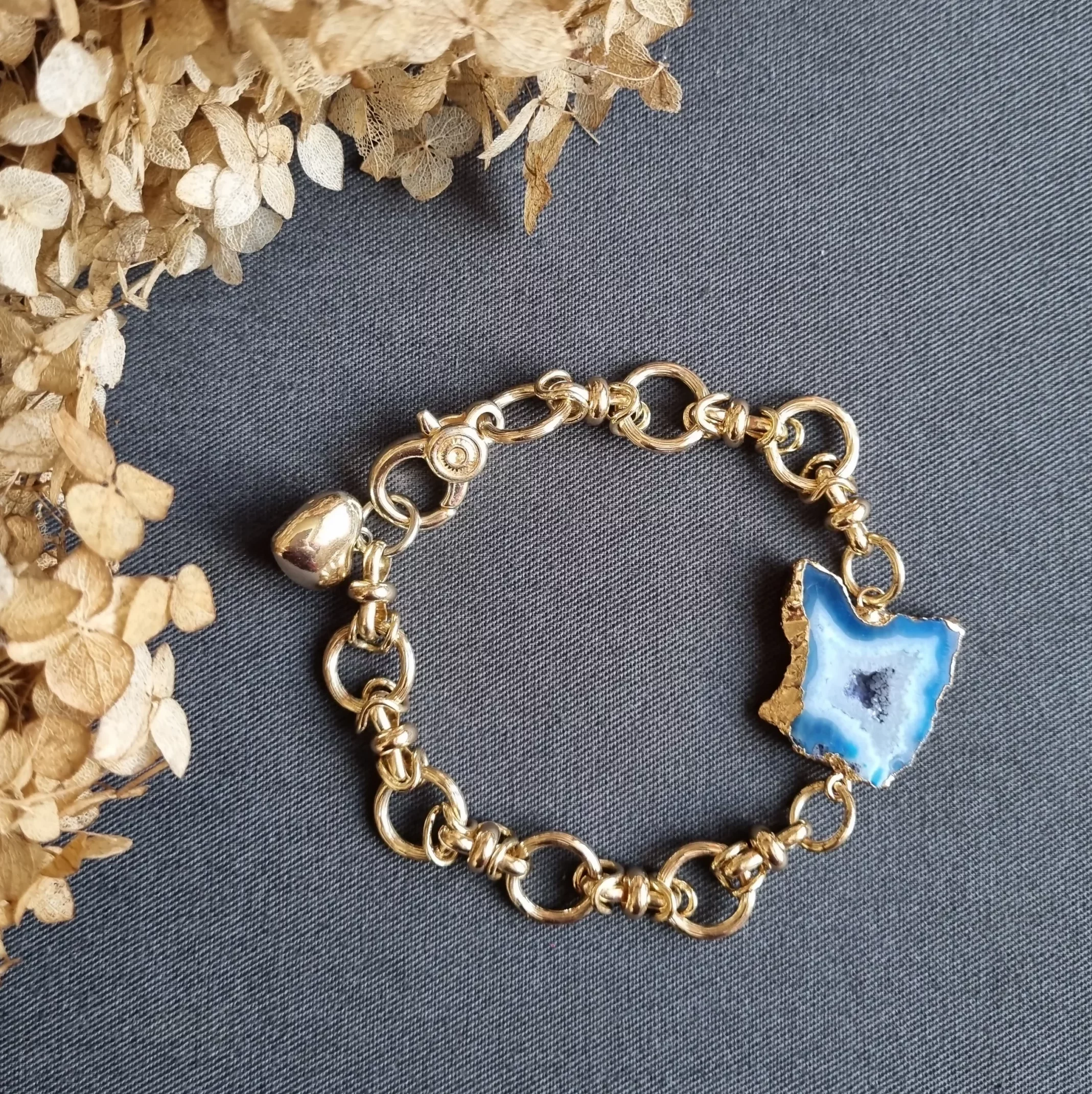 Браслет — сложная цепь с друзой голубого агата! Подвеска в виде объемного сердца.