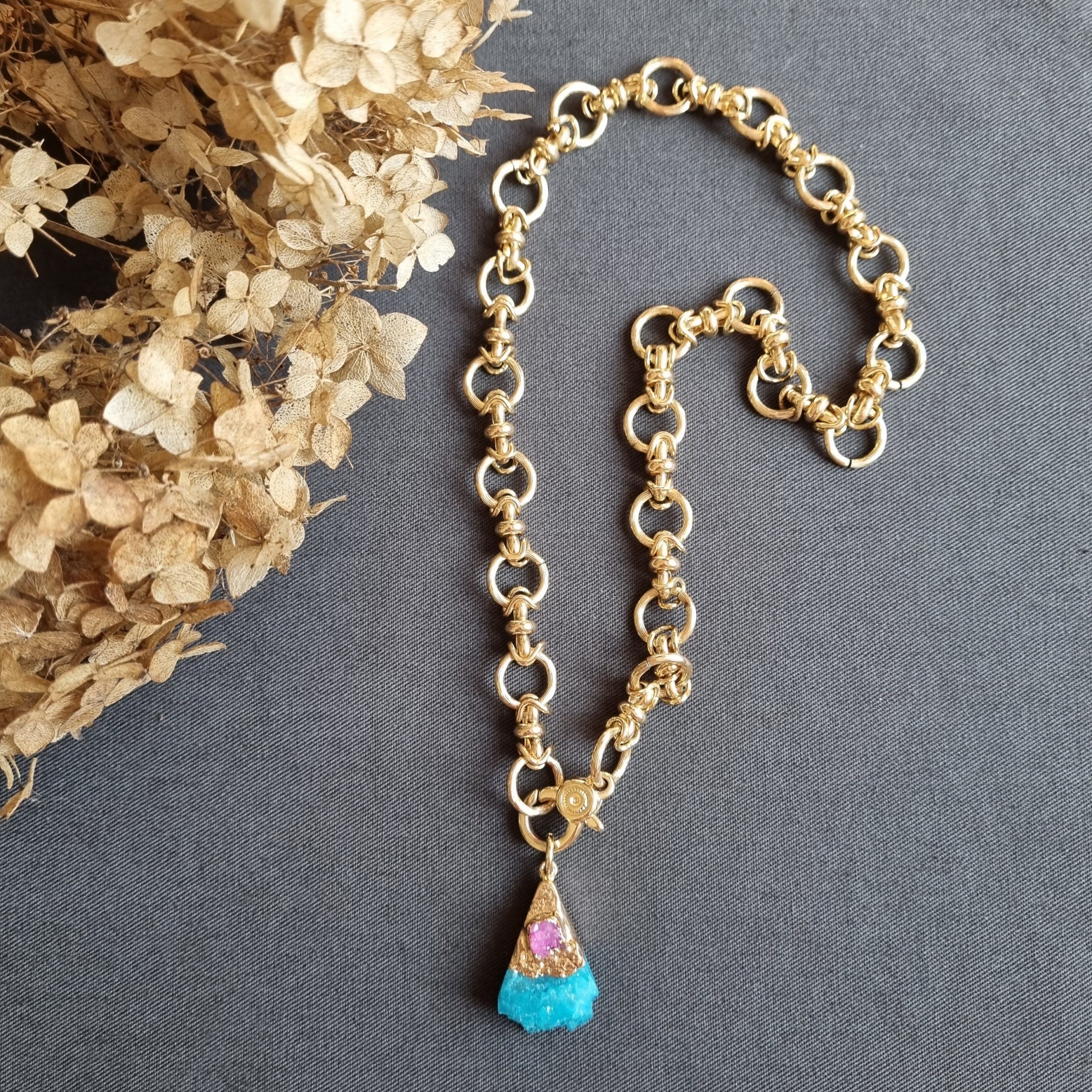 Кулон подвеска из сахарного кварца изумрудного цвета с добавлением розового агата в патине!