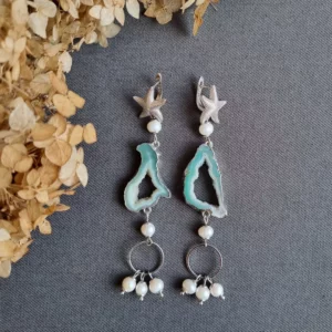 Серьги длинные, ассиметричные, сверхлегкие с друзами агата зеленого цвета и добавлением белого речного жемчуга — идеально подойдут, чтобы произвести впечатление!