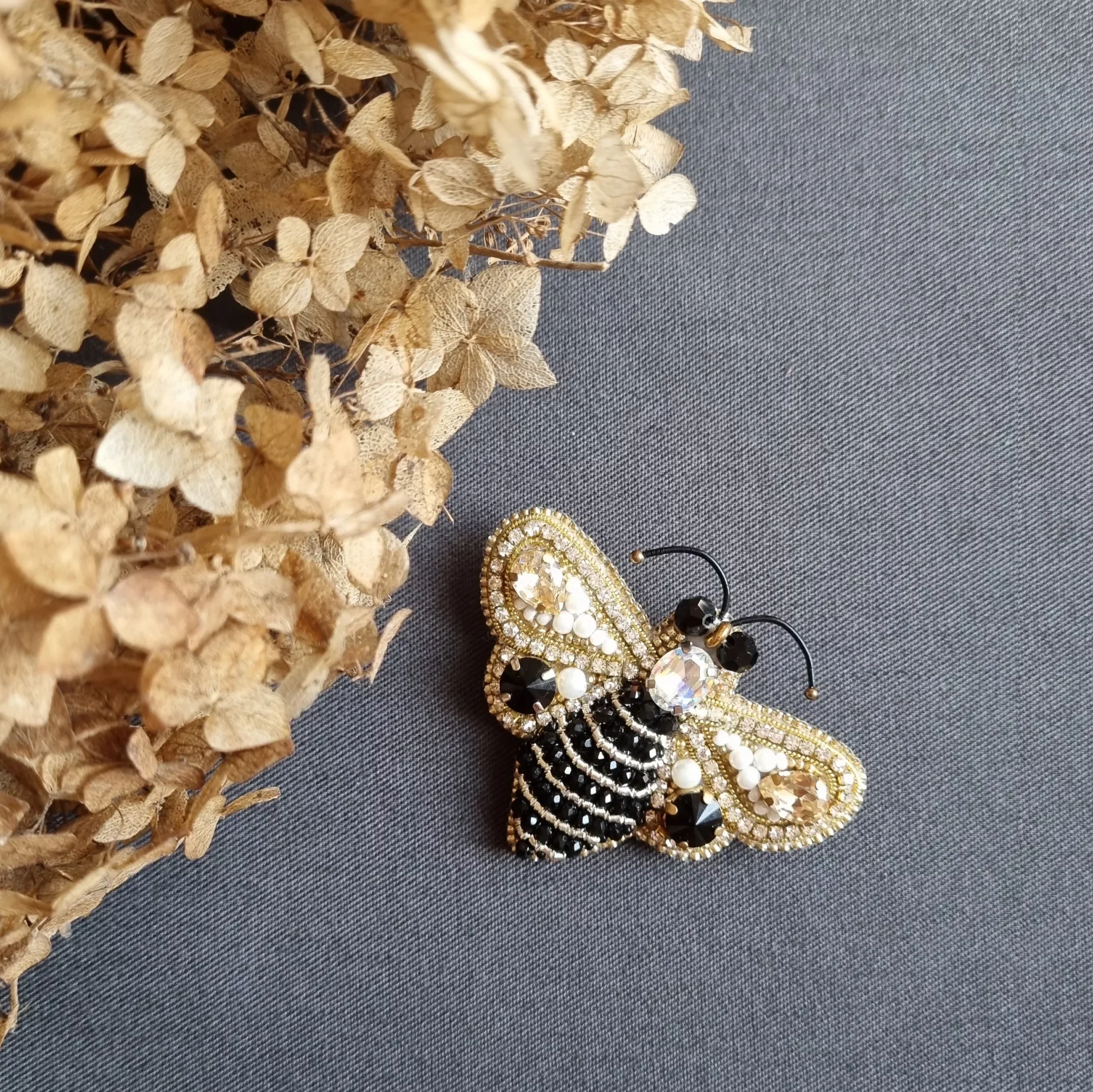 Брошь — пчела из японского бисера — пикантный акцент в образе! Застежка — булавка. Ручная работа.