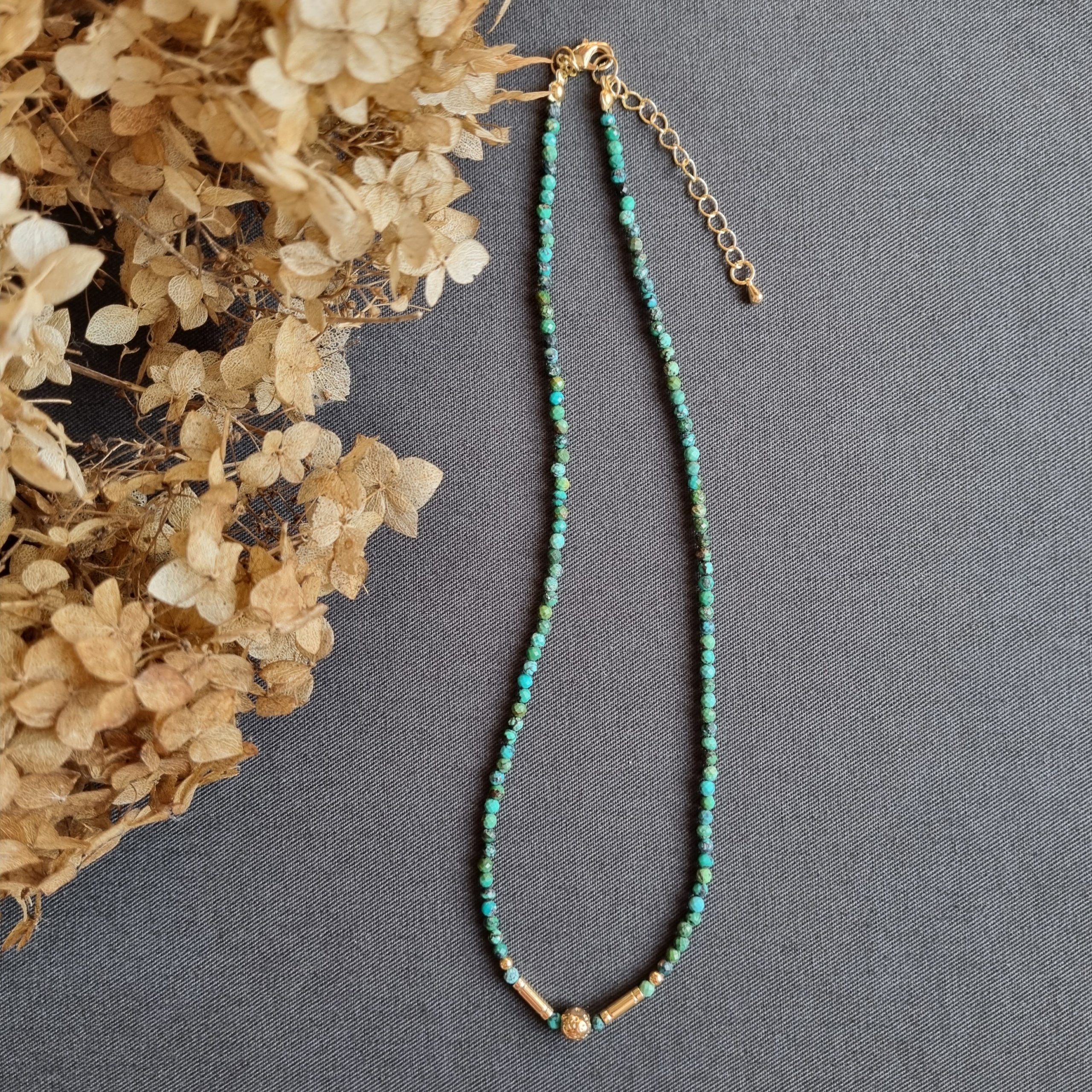 Чокер из бирюзы со вставкой из бусин лавы — прекрасное и ненавязчивое дополнение к образу!