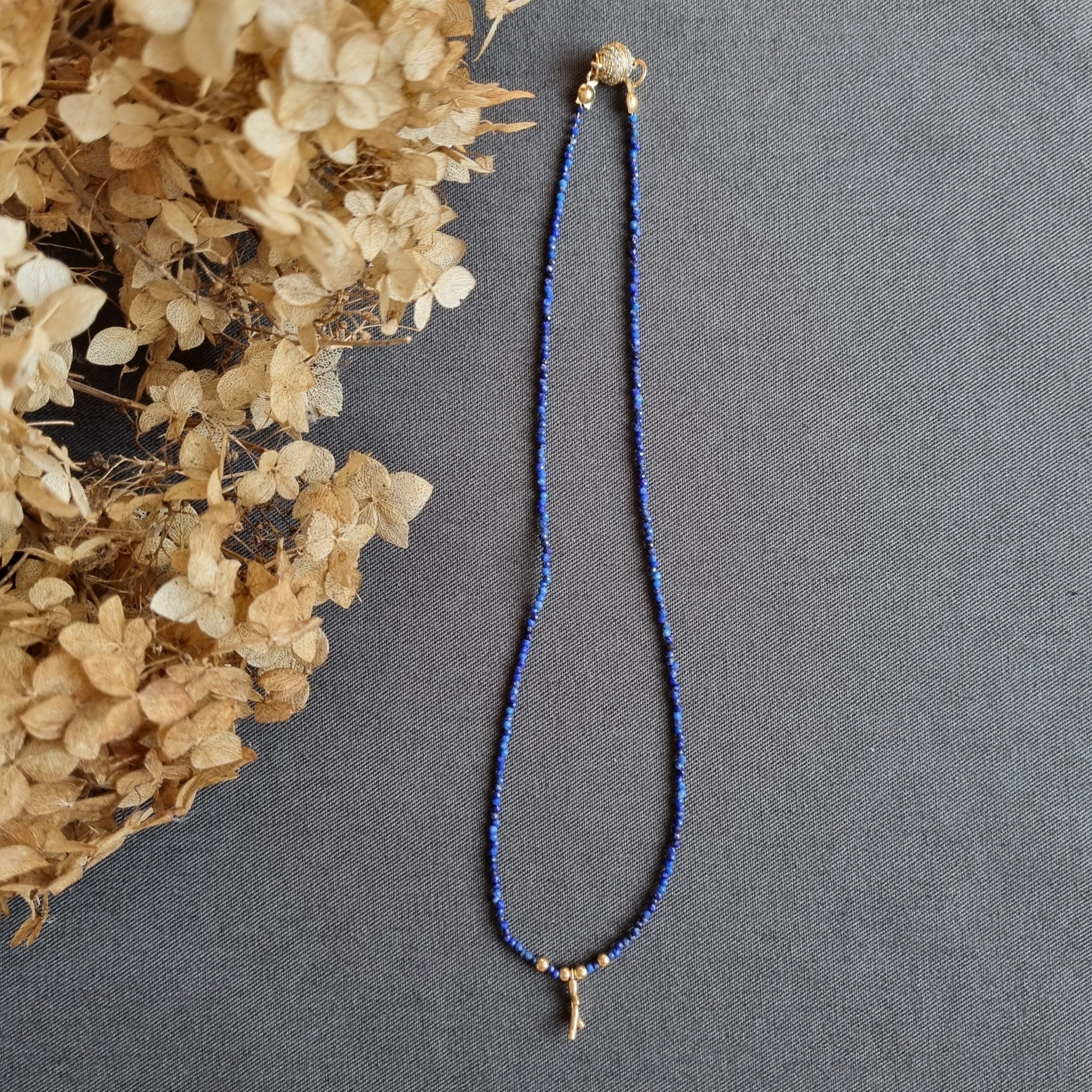 Чокер из лазурита с подвеской в виде коралла — легкое и оригинальное дополнение к образу!